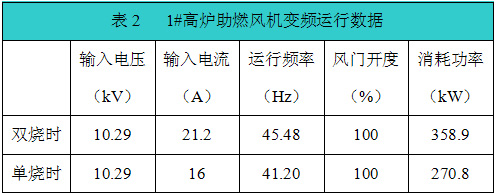 2#高爐與1#高爐運行工況基本相同,2#高爐助燃風機節(jié)能效果與1#高爐助燃風機節(jié)能效果相當,這樣一年兩臺風機共節(jié)約120余萬元,節(jié)電效果還是非常明顯的。