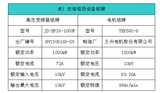 (1)改造現場設備介紹改造現場設備銘牌如表1所示。