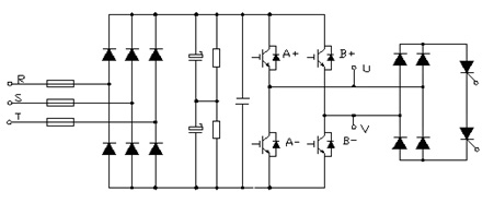 風光高壓變頻調速系統采用功率單元串聯的結構方式,可靠性高。功率單元采用標準模塊化設計,每個單元完全一樣可以互換,安裝維護簡單方便。并且每個單元都有旁路功能,當某個單元出現故障時,控制電路控制可控硅將故障單元的輸出短接,這樣變頻器仍能正常運行。