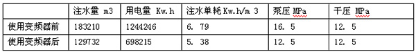水泵電機安裝變頻器前后的注水單耗從6.79下降到5.38,不考慮其它方面的影響: